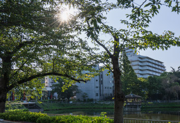 池の水面は、大空の群青を映し、公園の豊かな緑を映す。四季や昼夜の移ろいを晴れの日も雨の日も重ね、その煌めきは永遠に同じ表情ではありえない。この水辺の公園は子どもたちだけのものではない。人生の機微をさらに深める景勝地となる。