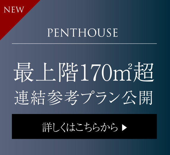 大空の営みや豊かな緑景の移ろいがピクチャレスクなパノラマとなるバルコニーからの眺望。高い建物が制限された南側の用途地域により、その開放感は色褪せることなく、生涯を癒やし、愉しむ風景として広がりつづける。